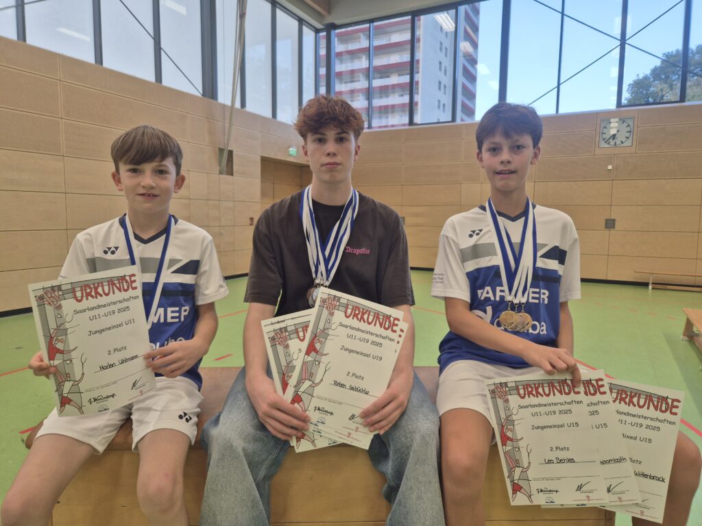 Leo spielte alle 3 Disziplinen. Im Einzel kam er ungefährdet ins Finale und traf hier auf Johannes Köhler (SUS Obere Saar). Hier kam es zum erwarteten hart umkämpften 3 Satz Spiel. Die beiden schenkten sich nichts und es gab viele lange Ballwechsel. Diesmal sollte allerdings Johannes die Oberhand behalten. Er gewann im 3. Satz 21:14. Im Mixed mit Natalie Wittenbrock konnte dann Leo im nächsten 3 Satz Krimi im Finale gegen Johannes und Sofia gewinnen. Denkbar knapp mit 21:18 im dritten Satz.
