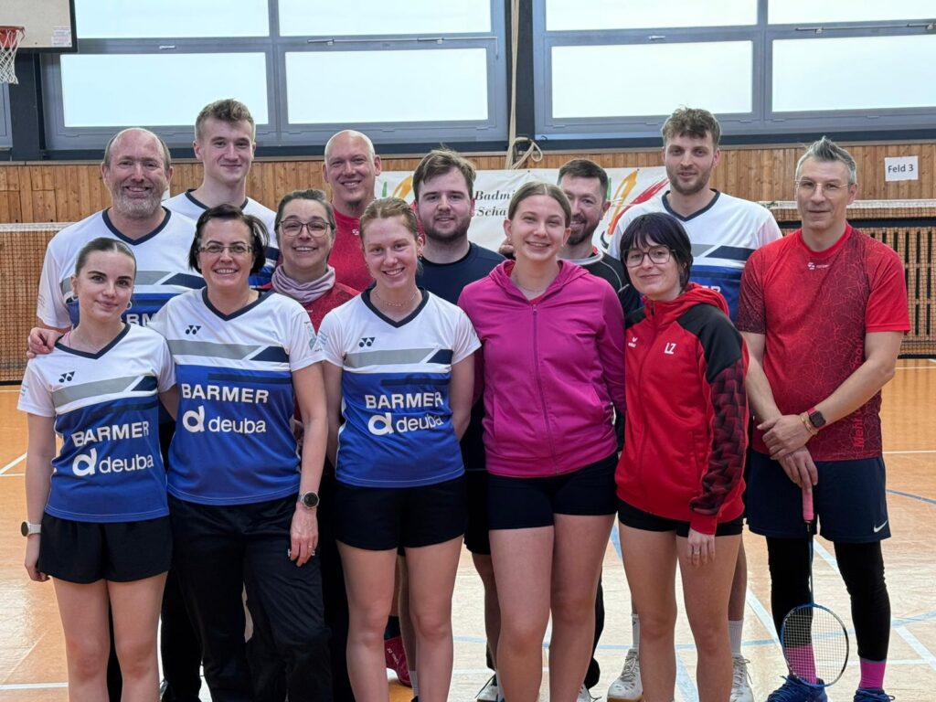 Gleiche Woche, in Schaffhausen, diesmal aber in der Runde gegen die 2. Mannschaft. Diesmal mit Unterstützung von Sina Schuck, Marie Hellbrück und Luca Lauer. Vielen Dank an euch. Im ersten Doppel traten wieder Sebstian Deutsch/Alex Noß an. Auch diesmal ein Doppel mit vielen langen Ballwechseln mit einem verdienten, aber knappen Sieg im 3. Satz mit 21:19. Markus Speicher/Luca Lauer spielten eines ihrer besten Doppel aber es reichte leider nicht ganz zum Sieg. 21:23 19:21. Sina Schuck und Jeanette Seibüchler holten einen ungefährdeten 2 Satz Sieg im Damendoppel. Sebastian setzte seine Siegesserie fort und holte im ersten Herreneinzel den 3. TVW Punkt. Er gewann das sehr lauf intensive Einzel 21:19 22:20. Alex und Luca konnten Ihre Einzel leider nicht gewinnen. Jeanette hatte etwas mit der niedrigen Halle zu kämpfen, gewann dann aber doch mit 21:15 21:15 Ihr Einzel. Das Mixed spielten Markus und Marie. Zeitweise lief es richtig gut, machten dann aber leider letztendlich bei dem druckvollen Spiel der Gäste zu viele Fehler und verloren in 2 Sätzen. Somit trennten wir uns mit einem Unentschieden.